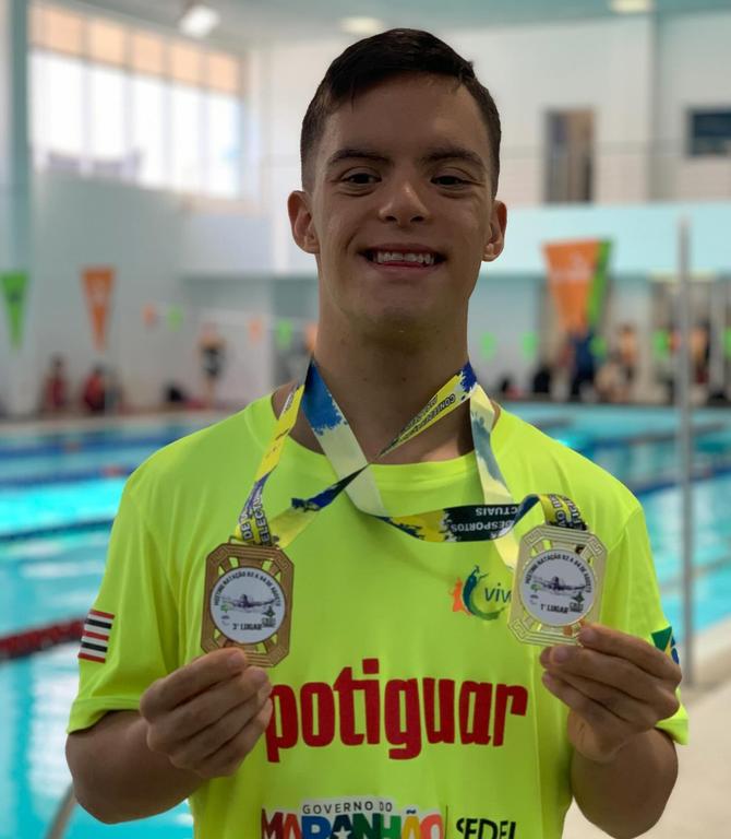 Referência no esporte maranhense, o nadador Davi Hermes, que conta com os patrocínios do Governo do Estado e da Potiguar, por meio da Lei Estadual de Incentivo ao Esporte, conquistou três medalhas no Meeting Brasileiro de Natação CBDI 2024, competição organizada pela Confederação Brasileira de Desportos para Deficientes Intelectuais (CBDI), com o apoio do CPB (Comitê Paralímpico Brasileiro), e realizada entre sexta-feira (2) e domingo (4), no Centro Paralímpico Brasileiro, em São Paulo. Davi foi um dos destaques da competição nacional ao faturar a medalha de ouro nas provas dos 50m e 100m borboleta, além de garantir o bronze nos 50m livre.